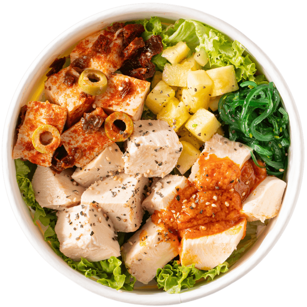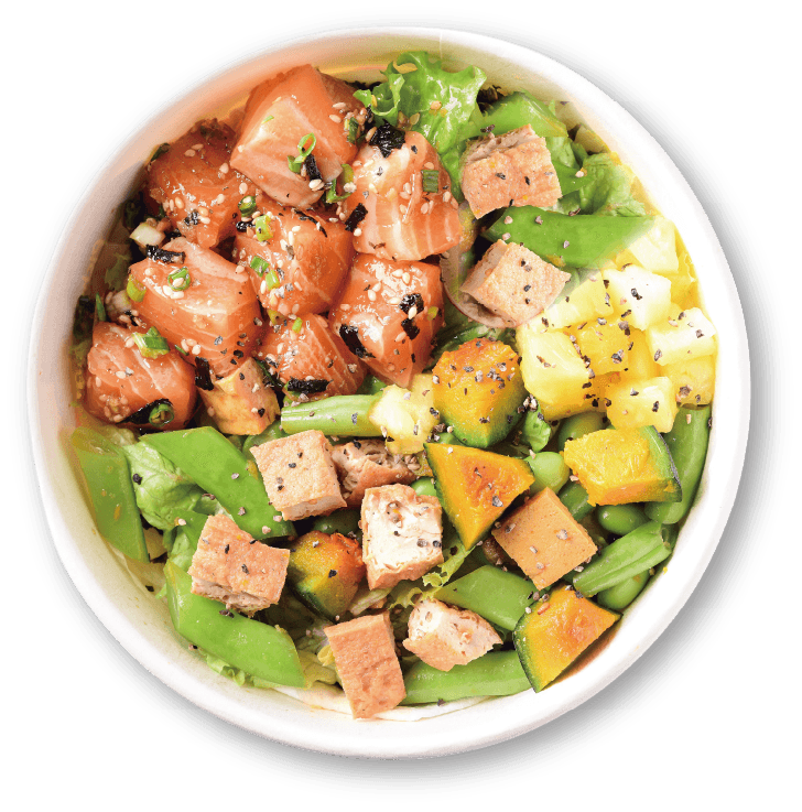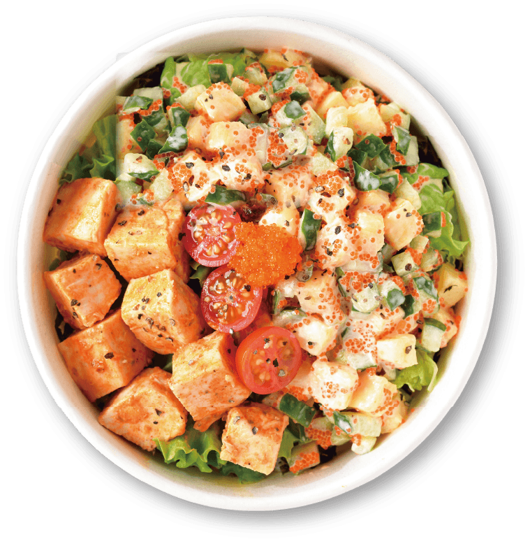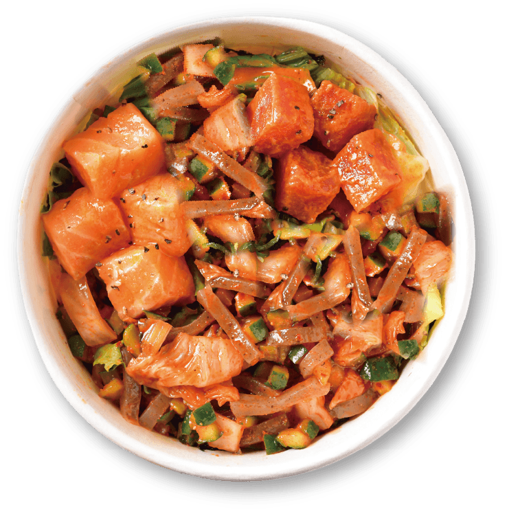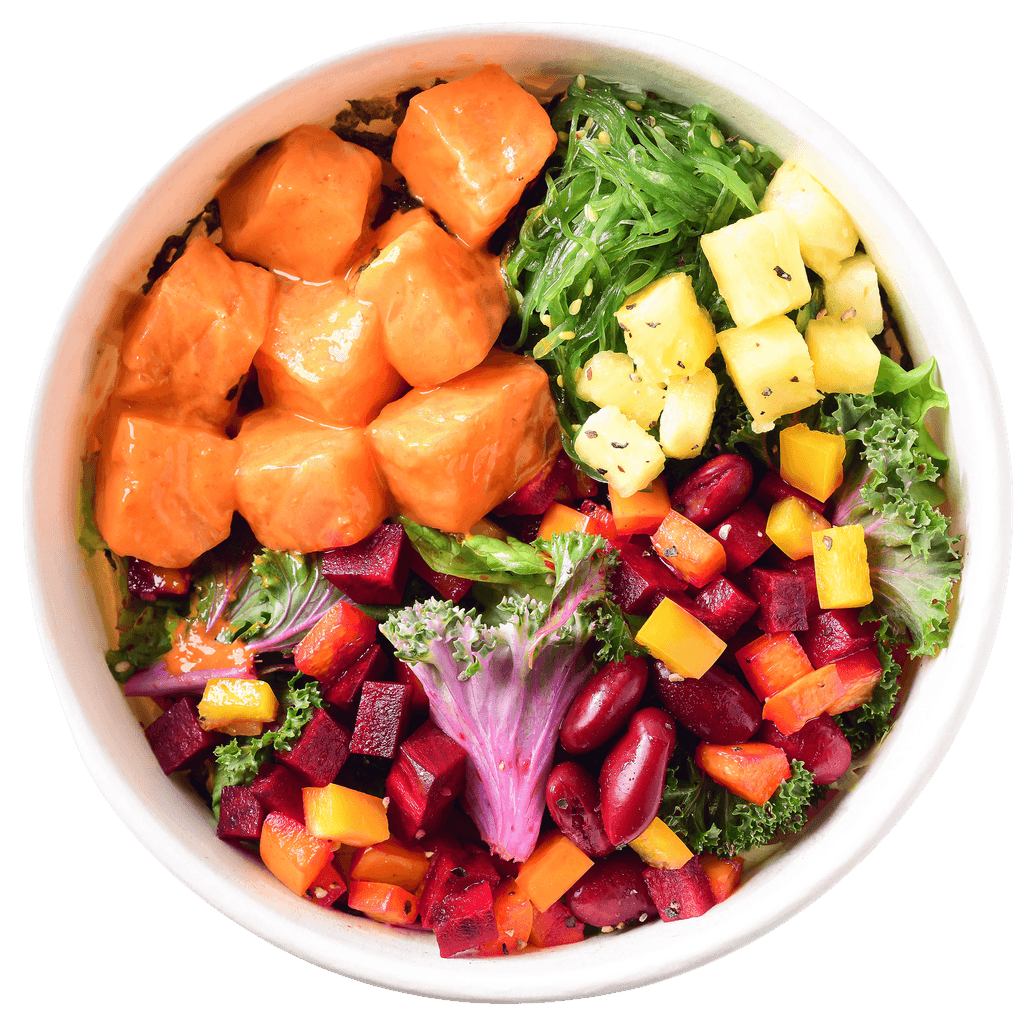 Smoked Oil Spicy Salmon (Onion), Beetroot, Yellow Bell Pepper, Red Kidney Beans, Kale, Edamame with Salad Dressing